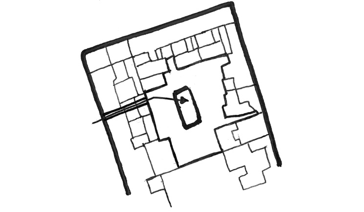 Order within chaos: the backs of the surrounding buildings are disordered in their form. The proposal creates a calm and ordered space within, centred around a three-storey atrium.